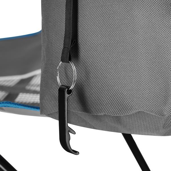 Stolička je vybavená držiakom na nápoj, bočným úložným priestorom na drobnosti (napr. knihu, telefón, baterku) a sieťovanou kapsou, ktorá sa perfektne hodí ako úložný priestor na fľašu, desiatu alebo mapu. Vďaka týmto riešeniam máte všetko, čo potrebujete, vždy po ruke.