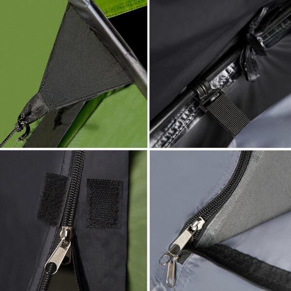 Trekker lze rychle postavit za pomocí tří skládacích, laminátových tyčí. Následně se vypne pomocí 6-ti napínacích šnůr a ocelových kolíků. Vše dostanete zabaleno v transportní tašce.