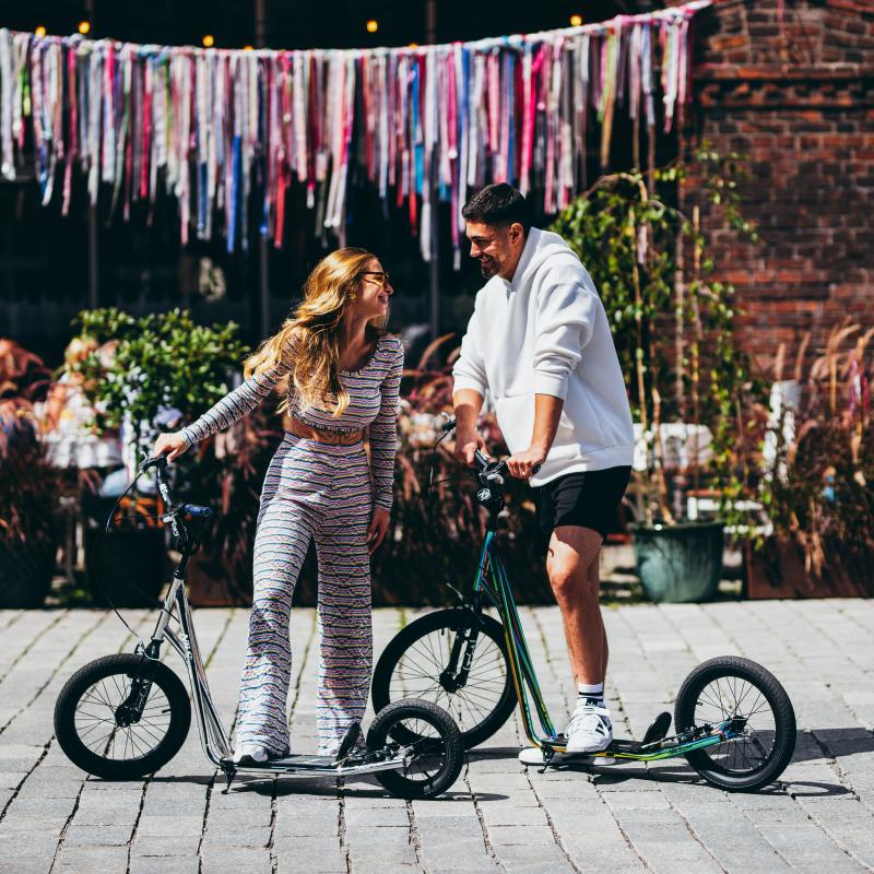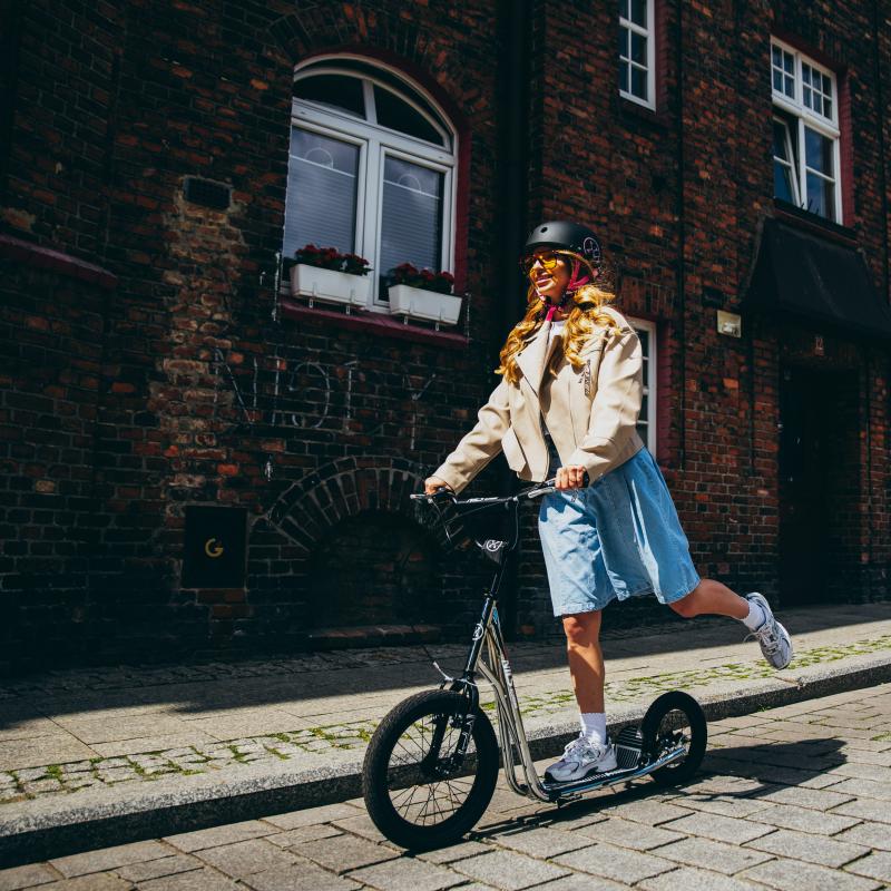 Jednou z najväčších výhod kolobežky WH10121 sú veľké nafukovacie kolesá: 16-palcové kolesá vpredu a 12-palcové vzadu. Vďaka ich veľkosti a konštrukcii kolobežka ponúka pohodlnú jazdu nielen na hladkom asfalte, ale aj na nerovnom chodníku, dlažobných kockách alebo štrkových cestách. Tlmenie, ktoré ponúkajú pneumatiky, účinne pohlcuje nerovnosti, čo sa prejavuje väčším pohodlím a menším zaťažením kĺbov. Je ideálna pre tých, ktorí si cenia plynulú jazdu a maximálnu kontrolu nad kolobežkou bez ohľadu na povrch.