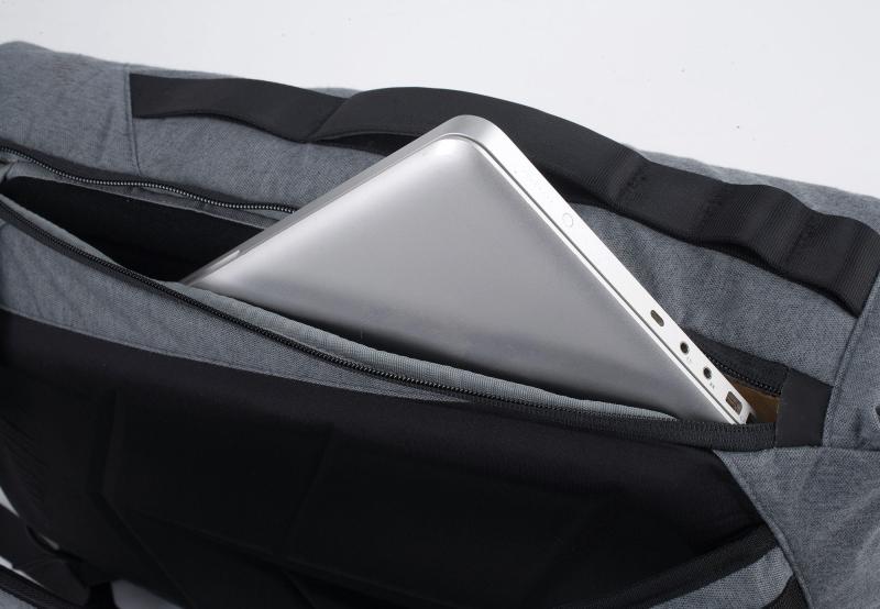 Vypolstrovaná kapsa na 15" notebook s bočním vstupem, rolovací uzavírání na kovový háček, přední kapsa s organizerem, polstrované popruhy s hrudní pásem, měkké síťovinové polstrování zad. Popruhy jdou přitáhnout k batohu aby neplandaly při nošení za boční ucho. Objem 28 l. Rozměry přibližně 47 x 30 x 12 cm, hmotnost cca 900 g.
