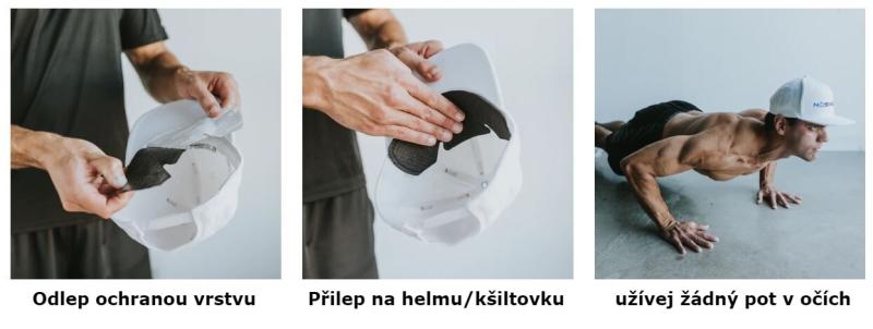 Pohodlie - Potítko je tenké, mäkké, ľahké a v prilbe či šiltovke je príjemné.