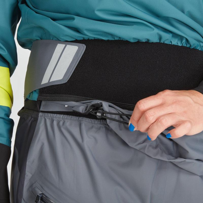 Uvnitř bundy je potažený nylonový komín, který lze připojit ke špricdeci a tím udržovat kokpit suchý. V pase je dvojité stahování pomocí suchého zipu a neoprénu, což zajišťuje těsné přilnutí k tělu a minimalizuje průnik vody.
