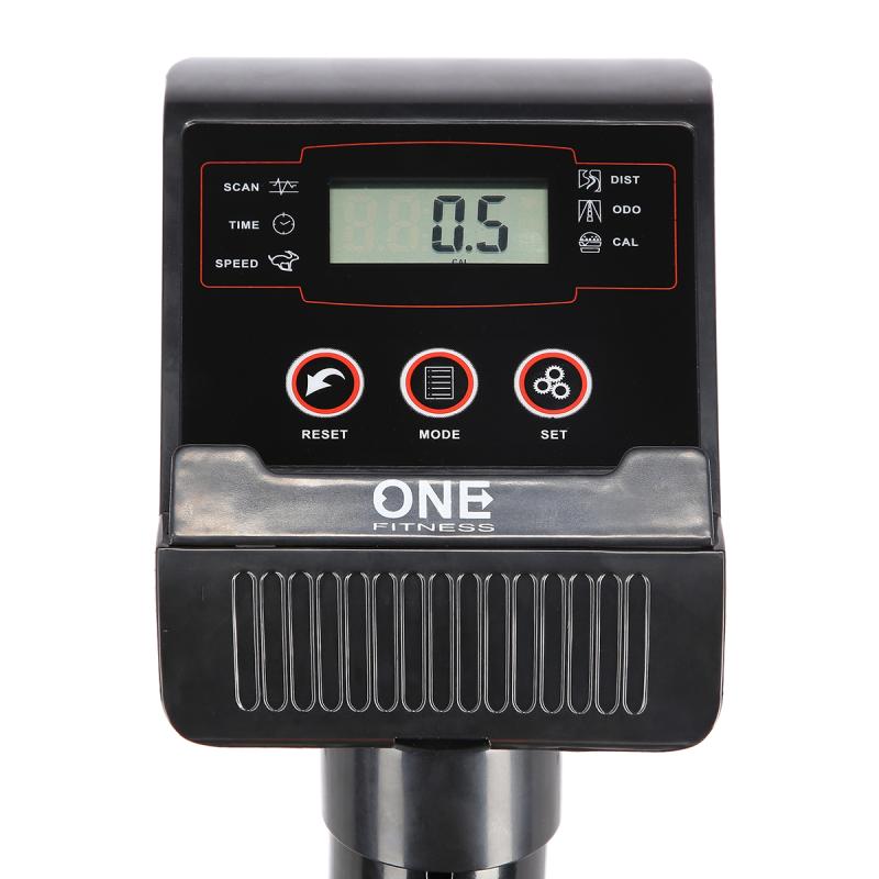 Mechanický rotoped ONE Fitness RW3011, jak už název napovídá, má mechanický systém brždění bez zátěžového kola. Přehledný počítač zobrazuje veškeré údaje potřebné pro přehledný trénink - čas tréninku, rychlost, vzdálenost, celková vzdálenost a spálené kalorie. Konzole je vybavena držákem mobilního zařízení, do kterého umístíte tablet nebo telefon a během tréninku můžete sledovat například oblíbený seriál.