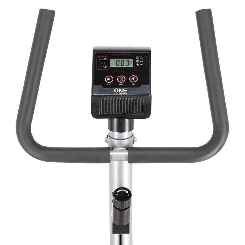 Mechanický rotoped ONE Fitness RW3011, jak už název napovídá, má mechanický systém brždění bez zátěžového kola. Přehledný počítač zobrazuje veškeré údaje potřebné pro přehledný trénink - čas tréninku, rychlost, vzdálenost, celková vzdálenost a spálené kalorie. Konzole je vybavena držákem mobilního zařízení, do kterého umístíte tablet nebo telefon a během tréninku můžete sledovat například oblíbený seriál.