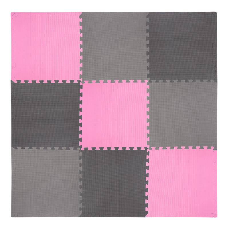 - 9 štvorcových dielov: 3 kusy ružové, 3 kusy svetlo sivé, 3 kusy tmavo sivé