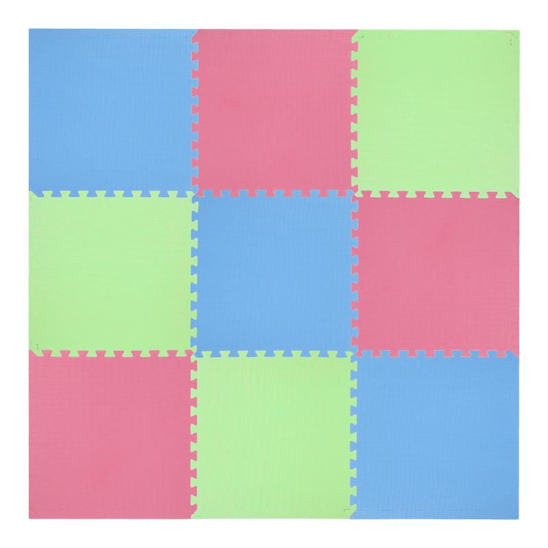 - 9 štvorcových dielov: 3 kusy zelené, 3 kusy modré, 3 kusy červené