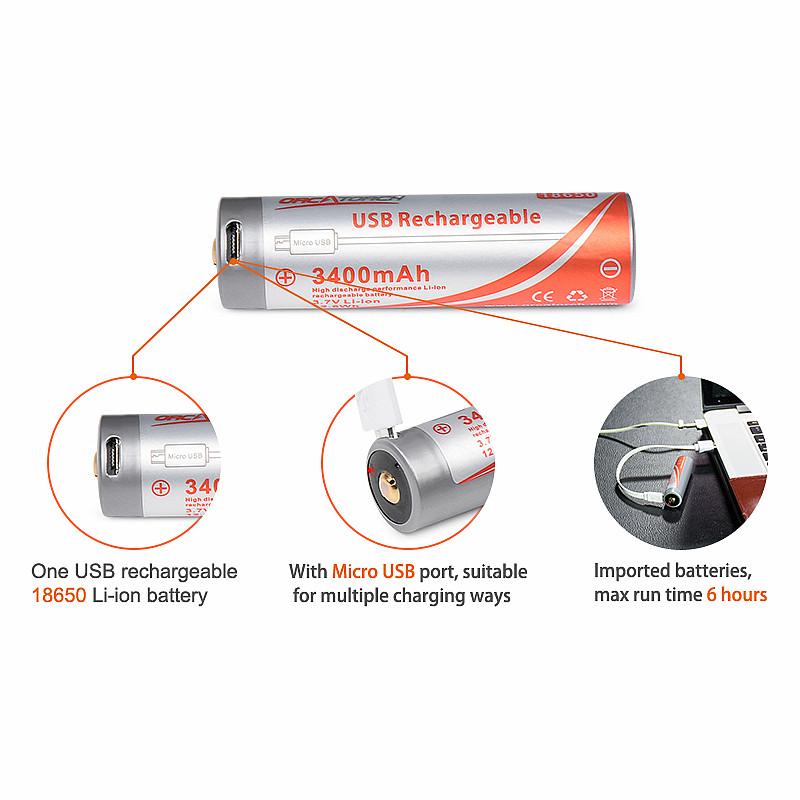 Li-Ion nabíjateľný akumulátor cez USB 18650