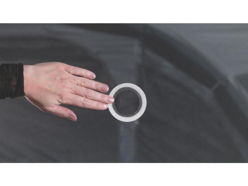 -obsahuje dva opravné krúžky s priemerom 7.6 cm v čiernej a šedej farbe, ktoré len nalepíte na sieťovinu