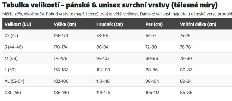 • XP 2.5-layer (recyklovaný nylon) – 10 000 mm vodní sloupec / 10 000 g/m²/24 h (A-1), měkký „soft-touch“ omak.
