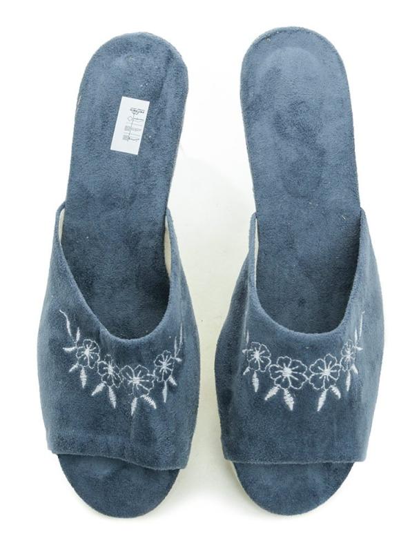Lehké textilní papuče s volnou špicí a klínkovým podpatkem 4 cm vhodné pro celoroční domácí nošení. zobrazit celý popis
