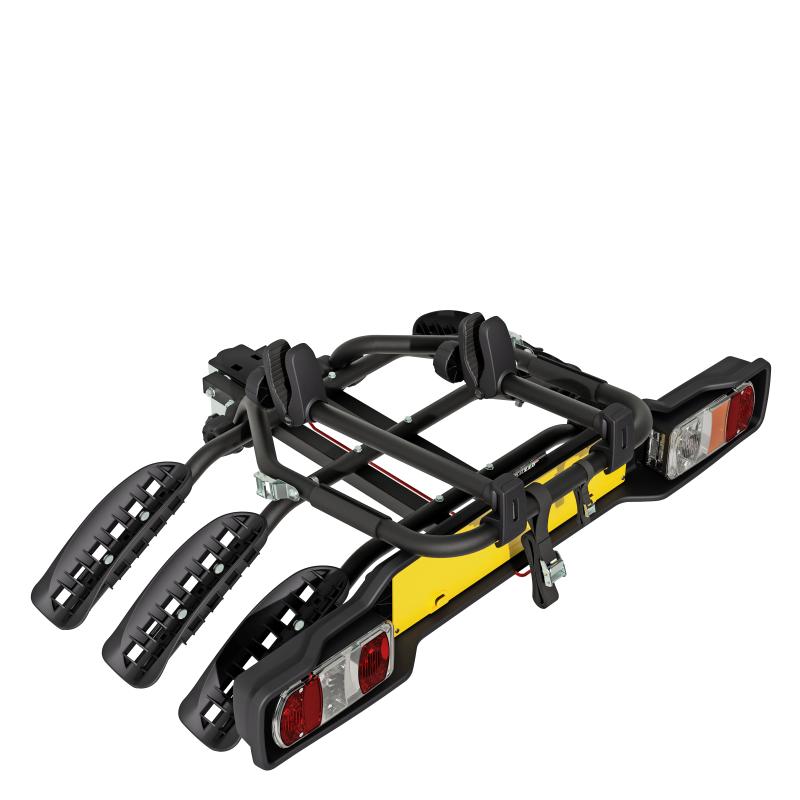 Na upnuntí nosiče k tažnému zařízení je potřeba klíč. K nosiči můžete dokoupit také zámky. Jelikož je nosič samotný neuzamykatelný, doporučujeme dokoupit alespoň jeden zámek na uzamknutí k tažnému zařízení. Pokud dokoupíte i druhý zámek, můžete uzamknout kola na nosiči pomocí uzamknutí třetího kola (pomocí držáku 3. kola).