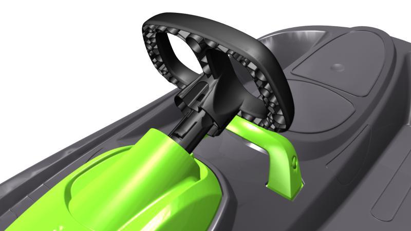 Štýlový dizajn pretekárskeho formulového vozidla. Stredová brzda pre väčšiu bezpečnosť. Originálne prevedenie so štyrmi lyžinami. Zaručuje jednoduché zatáčanie. Zatáčanie pomocou diferenciálu zvyšuje rýchlosť v zákrutách, pretože každá lyžina môže zatočiť pod iným uhlom.… zobraziť celý popis