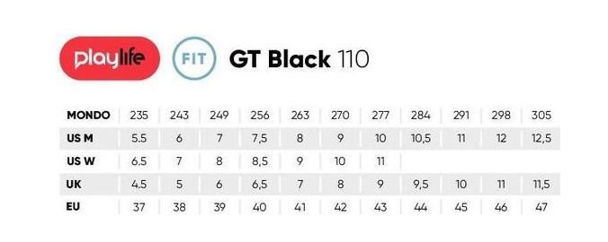Korčule PLAYLIFE GT Black Grey 110, doplnené ľahkým a odolným hliníkovým rámom s 3D reliéfom, ktorý sa pohybuje na kvalitných kolieskach 3 x 110 mm a hladkých ložiskách WICKED, sú ideálne inline korčule na začiatok vašej cesty na fitness korčuliach.