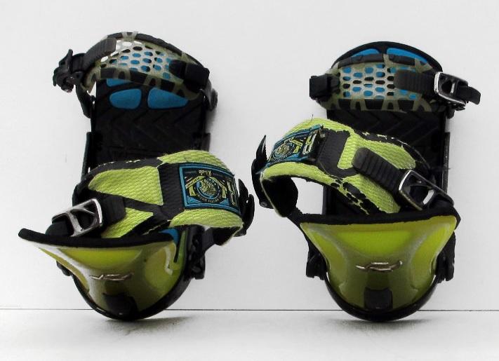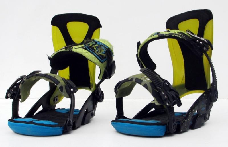 Použité snowboardové vázání ve velikosti M s drobnými známkami opotřebení, které nemají vliv na jeho funkčnost.