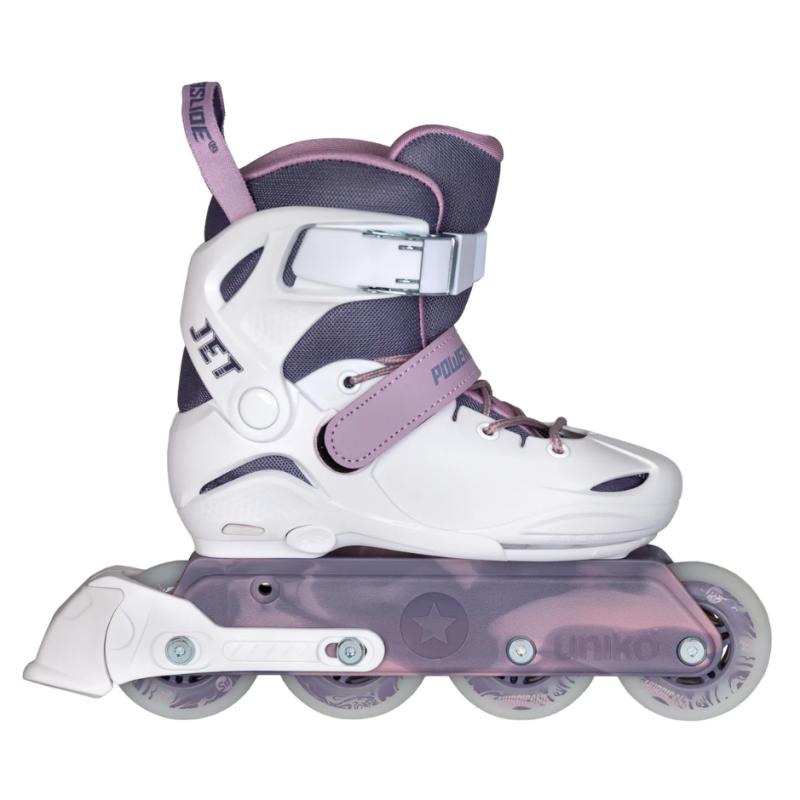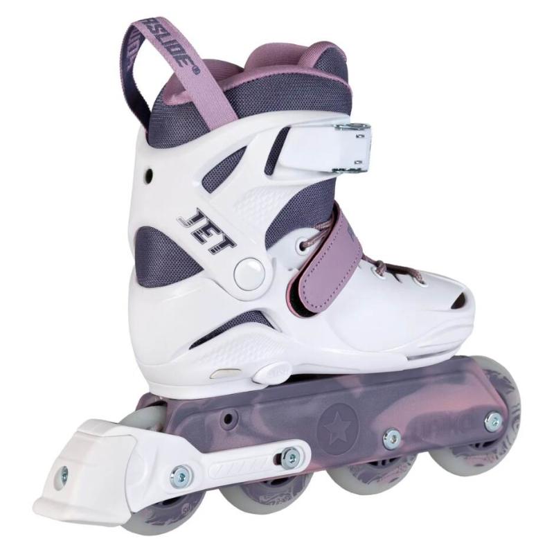 Dětské inline brusle Powerslide Jet Blackberry představují lehký a praktický model, který kombinuje stabilitu, pohodlí a plynulou jízdu. Jsou navrženy tak, aby pomáhaly dětem při učení bruslení i při postupném zdokonalování techniky. Díky možnosti nastavení velikosti a pevné konstrukci poskytují jistotu a komfort i při delším nošení.