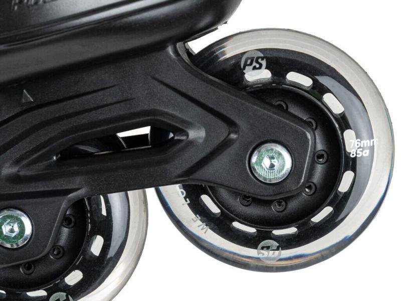 • Kolieska sú tu použité Powerslide One s tvrdosťou 85A a priemerom veľkostí v rozmedzí 64-76mm podľa veľkosti korčule.