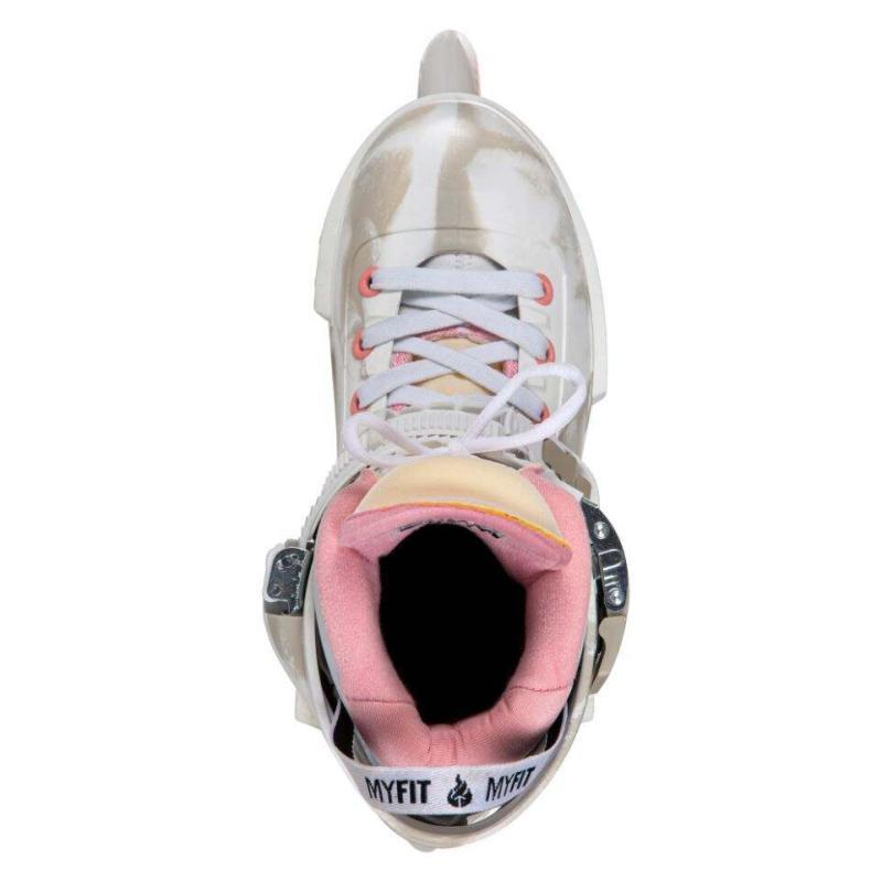 • Bota je k rámu připevněna tříbodovým uchycením, které také více tlumí vibrace vyvolané jízdou, lépe přenáší sílu odrazu a poskytuje více kontroly během bruslení. Trinity umožňuje individuální nastavení rámu vůči botě.