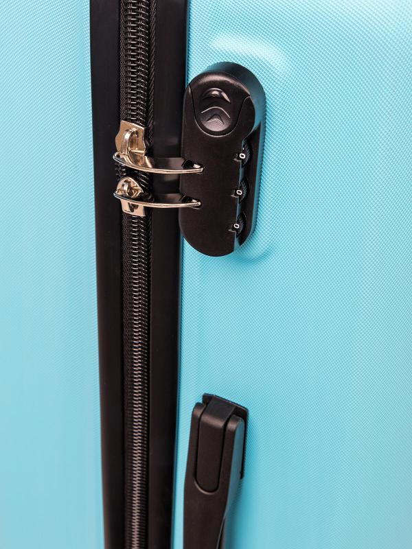 Uzavírání kufru je řešeno zipem s dvojitými jezdci, které lze zabezpečit pomocí kódového zámku. Vnitřní prostor je rozdělen látkovou přepážkou s kapsou pro lepší organizaci věcí a doplněn o křížové upínání, které pomáhá udržet obsah na svém místě během přepravy.