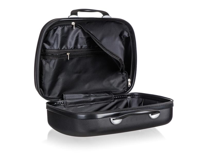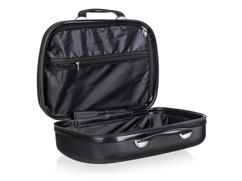 Kufřík má rozměry 35 x 29 x 17 cm a objem 15 litrů, což poskytuje dostatek prostoru pro základní cestovní potřeby. Je vyrobený z odolného plastu ABS, který zajišťuje ochranu obsahu před nárazy a mechanickým poškozením. Celková hmotnost kufříku je 1,6 kg, přičemž maximální nosnost činí 8 kg, což umožňuje pohodlné přenášení i těžších předmětů.