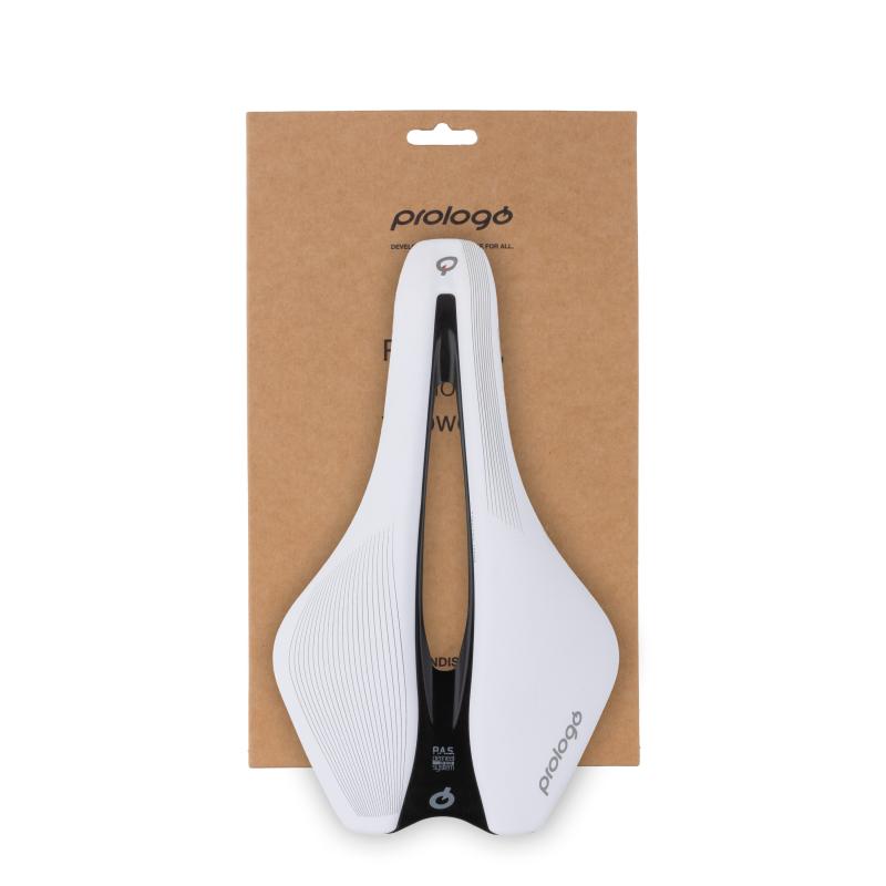 Rozměry sedla jsou 245 x 153 mm, což představuje vyvážený kompromis mezi komfortem a podporou. Produkt je dodáván v bílé barvě a balen na kartě značky Prologo.
