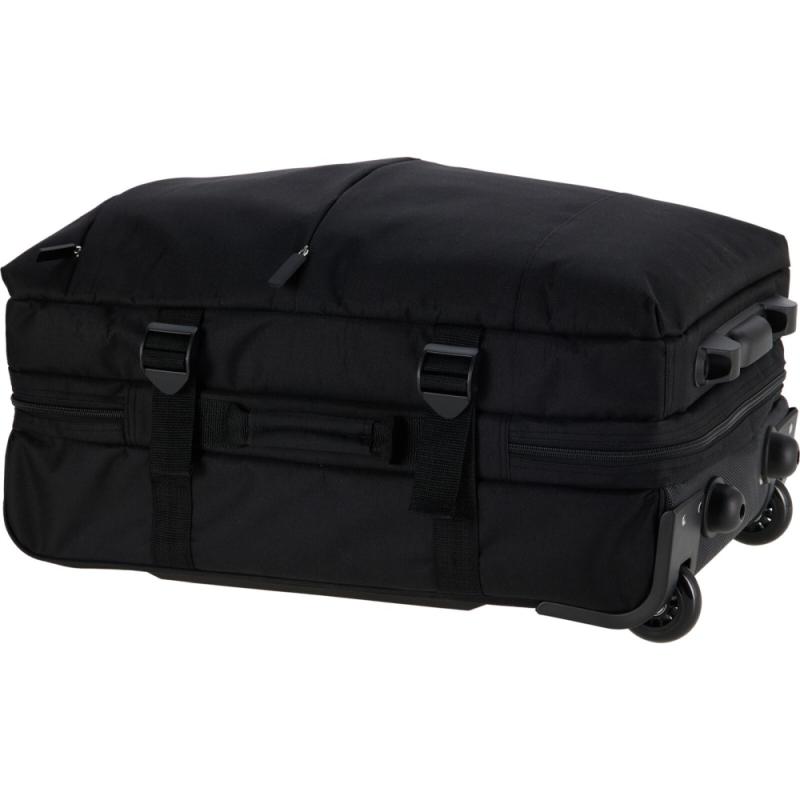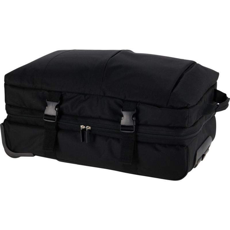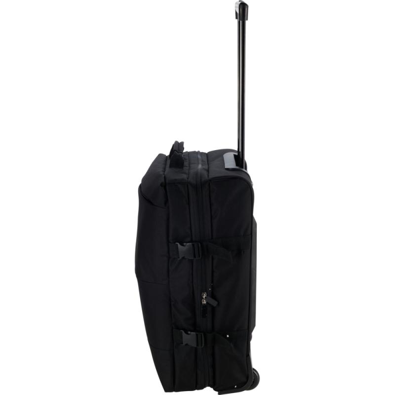 Integrovaný vozík s dvěma kolečky umožňuje pohodlnou manipulaci, a to i při plném zavazadle. Polstrované rukojeti na vrchu a boku usnadňují zvedání a přenášení v situacích, kdy není možné tašku táhnout. Pro bezpečné upevnění obsahu slouží čtyři nastavitelné popruhy, které zabrání pohybu věcí uvnitř během přepravy.
