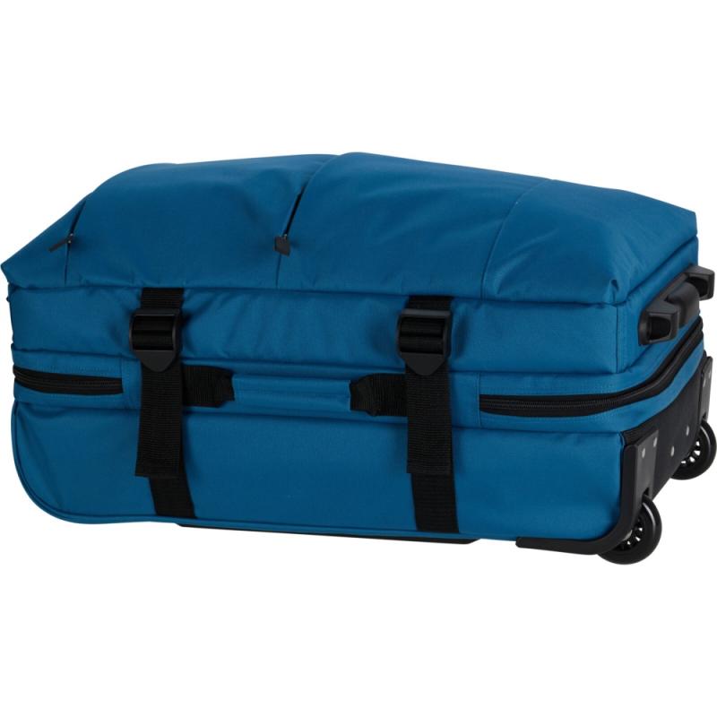 Součástí je integrovaný vozík s dvěma kolečky, což umožňuje snadné a pohodlné přenášení bez zbytečné námahy. Pro lepší manipulaci slouží polstrované rukojeti umístěné nahoře i na boku tašky, které usnadní zvedání a přenášení v různých situacích.