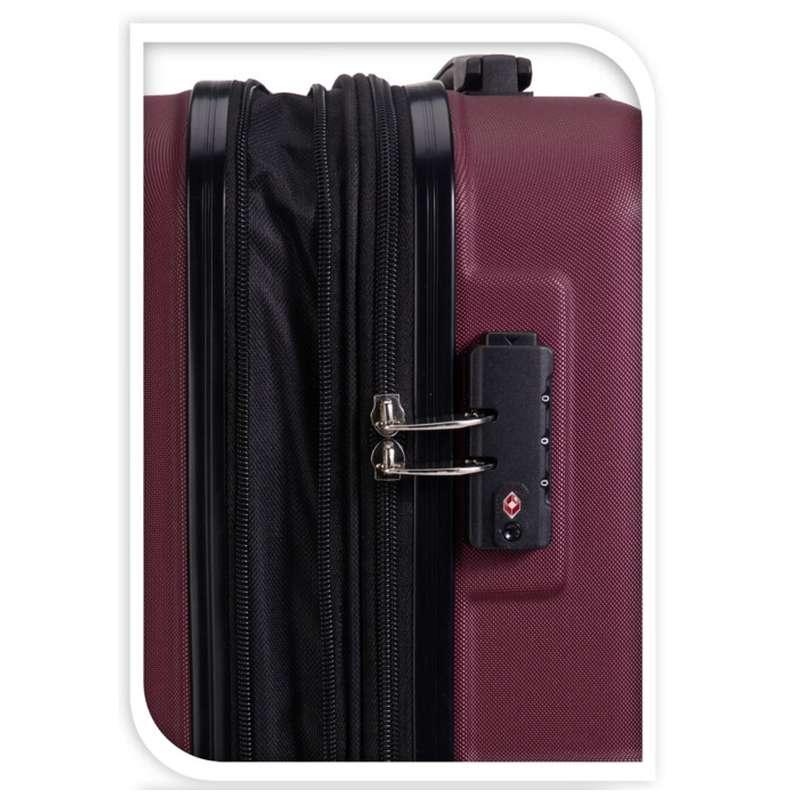 Vychutnejte si cestování ve stylu s touto luxusní sadou dvou cestovních kufrů v odstínu bordó s elegantními černými detaily. Kufry jsou vyrobeny z odolného ABS materiálu, který zajišťuje maximální ochranu vašich věcí.