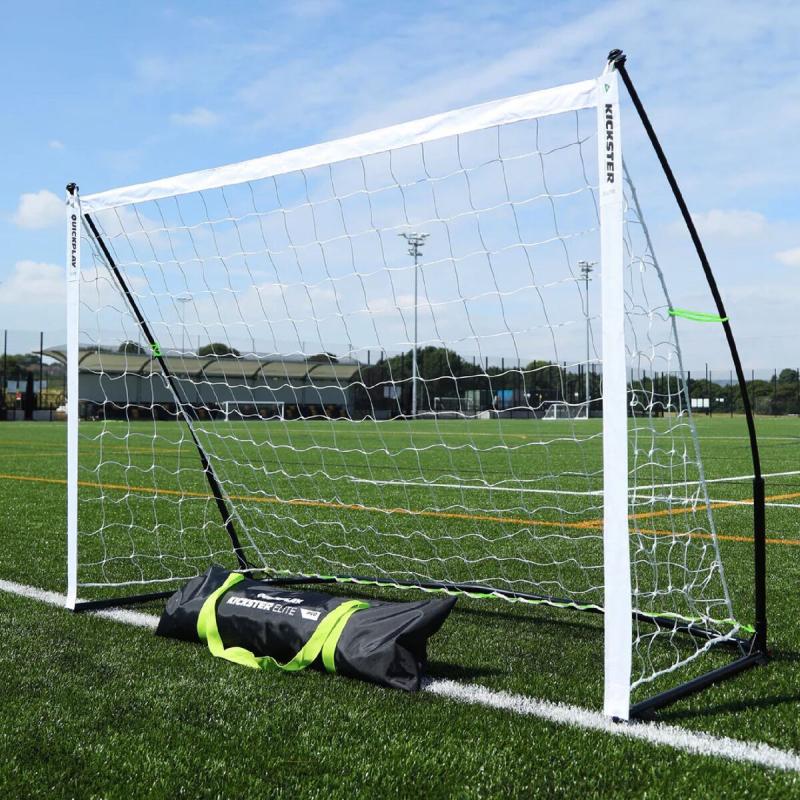 Značka Quickplay představuje řadu fotbalových branek na trénink Kickster ELITE. Oproti klasickému modelu tato branka nabízí stabilní zatíženou základnu a díky tomu je tento model vhodný pro tvrdé povrchy jako umělý trávník, beton či do tělocvičny.Tato branka na fotbal je díky své konstrukci lehce skládací a pomocí přiloženému vaku ji jednoduše uskladníte a přenesete mezi jednotlivými tréninky. Je navržená tak, aby byla odolná a přenosná, s patentovaným systémem FLEXI POST využívajícím kombinaci oceli a skelných vláken v rámu spolu s flexibilní látkovou příčkou a systémem sloupků. Branka Kickster ELITE je vhodná pro individuální trénink i pro fotbalové kluby. Branka obsahuje také kolíky pro upevnění do země.