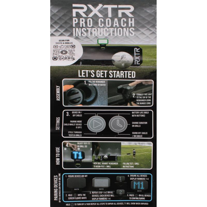 Predstavujeme vám absolútnu novinku medzi tréningovými pomôckami pre efektívny rozvoj futbalových hráčov a hráčok všetkých výkonnostných úrovní. Tento systém obsahuje odrážaciu dosku, ktorú je možné naplniť pieskom pre lepšiu stabilitu, LED panel, USB nabíjačku a značky na podlahu. Model RXTR PRO je oproti verzii RXTR Home Coach zaujímavejšou možnosťou prepojenia viacerých kusov, čo umožňuje komplexnejší a tímový tréning. Ide o kompletný tréningový systém, ktorý zlepší techniku stredu tela, presnosť prihrávok, kontrolu lopty a zároveň podporuje vytrvalosť. Vďaka prehľadu o skóre získate motiváciu k dlhšiemu a intenzívnejšiemu tréningu, ktorý je možné navyše spestriť zábavnou formou.