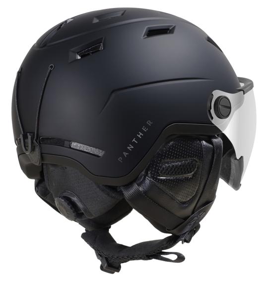 Namiesto klasických okuliarov je prilba vybavená fotochromatickým štítom, ktorý automaticky mení stmavnutie podľa intenzity UV žiarenia. Vďaka tomu máte vždy jasný a nerušený výhľad za všetkých svetelných podmienok. Štít je vyrobený z nárazuvzdorného polykarbonátu DURAMAX s povrchovou úpravou proti zahmlievaniu (ANTIFOG), čo výrazne predlžuje jeho životnosť a zabezpečuje čistý obraz bez kondenzácie vodných pár.