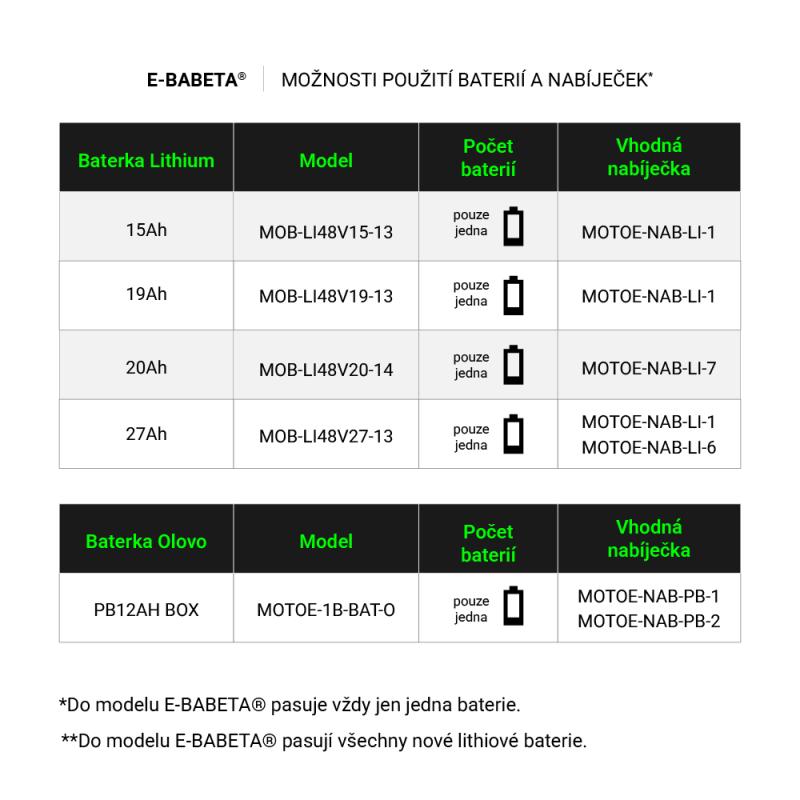 - Batéria vyberateľná: Olovená / Líthiová (nie je súčasťou elektroskútra)