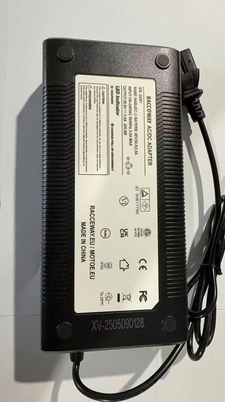 Nabíječka na Lithiové baterie s napětím 48V RaccewayTato nabíječka je určena pouze!!! pro Lithiové baterie s konektorem pro Motorky Racceway E-Babeta, E-Fichtl ,E-moped,E-Parez a E-Babeta II.