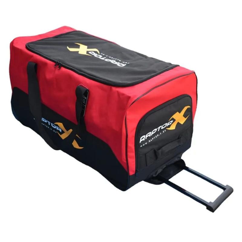 Cestovná taška na kolieskach RAPTOR-X Wheel Bag Senior má rozmery 92 x 42 x 46 cm a je určená pre seniorské hráčov a ich kompletné vybavenie na tréning či zápas. Taške nechýba vysúvacia rukoväť pre pohodlnejšie prepravenie a kolieska majú priemer 90 mm.Pre vyššiu tuhosť tašky slúži vnútorný kovový rám a dve plastové výstuže na spodnej ploche tašky. Taška je vyrobená z odolného materiálu nylon 400D. Na jednej strane tašky sa nachádza bočná kapsa, ktorá je rovnako uzatvárateľná na zips a je všitá do vnútorného priestoru samotnej tašky. Jednoduché otváranie hlavného priestoru je zabezpečené klasickým U zipsom. Tašku tiež prenesiete pohodlne cez rameno či v ruke vďaka dvom popruhom.
