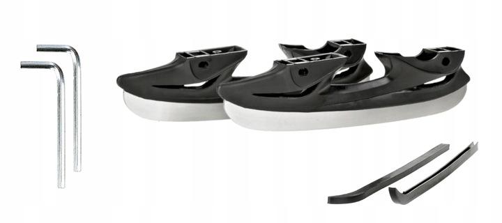 Nůž je vyroben z oceli. K dispozici jsou dvě varianty: dámský s ozubením v barvě bruslí a pánský bez zoubků (hokejový). Výběr typu nože proveďte v pravé části stránky pod volbou velikosti bruslí.