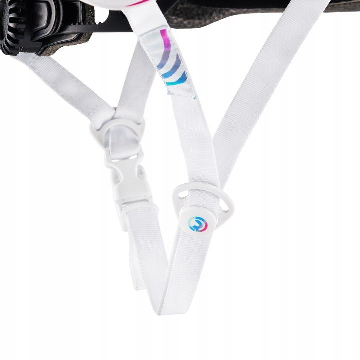 Zapínanie pod bradou je praktické a pevné, čo zabezpečuje, že prilba zostane na mieste aj pri náhlych pohyboch.