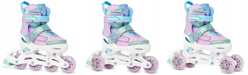 • Balenie obsahuje konverznú sadu pre premontovanie koliesok vedľa seba, čo umožňuje premenu korčúľ na trojkolové, ideálne pre začiatočníkov