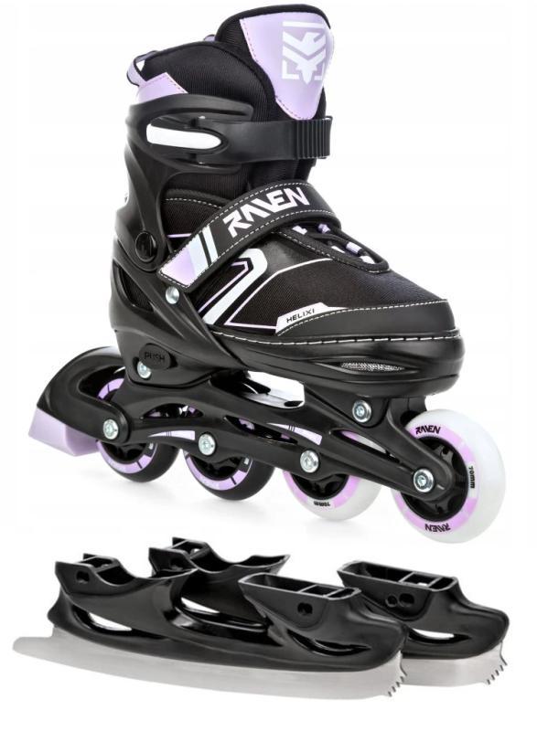 Raven Helixi Black/Violet dětské kolečkové brusle 2v1 - svítící kola LED POUZE EU 38-42, dámský (se zoubky) (VÝPRODEJ)