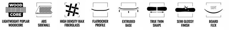 Allmountain/freestyle snowboard so súmerným true twintip tvarom, ktorý je vhodný pre začiatočníkov aj pokročilých jazdcov. Snowboard je tvorený ABS sidewall konštrukciou, má celodrevené jadro a klasické inzerty 2x8. Doska je ľahká a mäkšia, čo umožňuje jednoduchšie zatáčanie pri nižších rýchlostiach. Pekný dizajn, super konštrukcia a jazdné vlastnosti. Univerzálny snowboard vhodný na zjazdovku, do parku aj prašan.