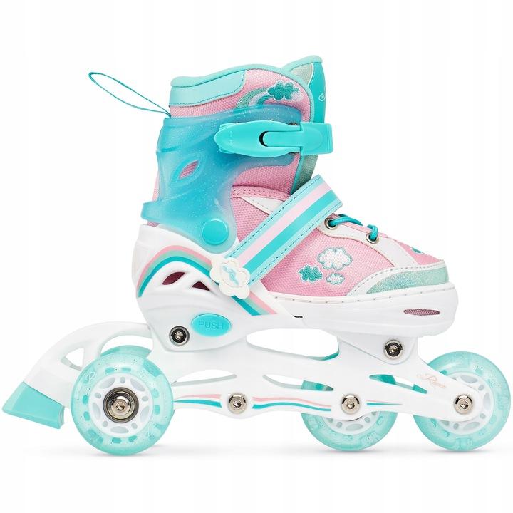 Velikostně nastavitelné inline brusle určené pro dívky, které rostou spolu s nohou dítěte. Brusle lze zvětšovat v rámci uvedených rozsahů velikostí, což umožňuje delší využití produktu a úsporu nákladů.