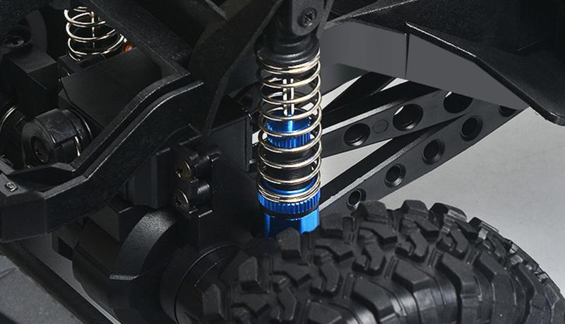 4WD pohon, plně proporcionální řízení, rychlost až 15 km/h, přední i zadní LED osvětlení, odolnost proti stříkající vodě, kovová kuličková ložiska a ocelové odpružení, kompletní 100% RTR sada
