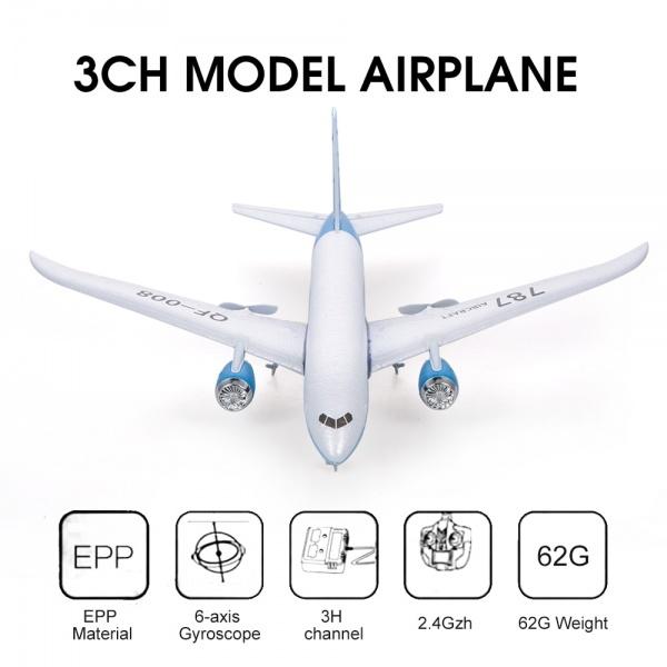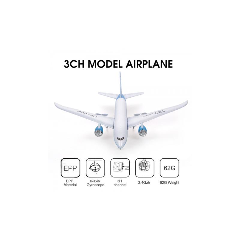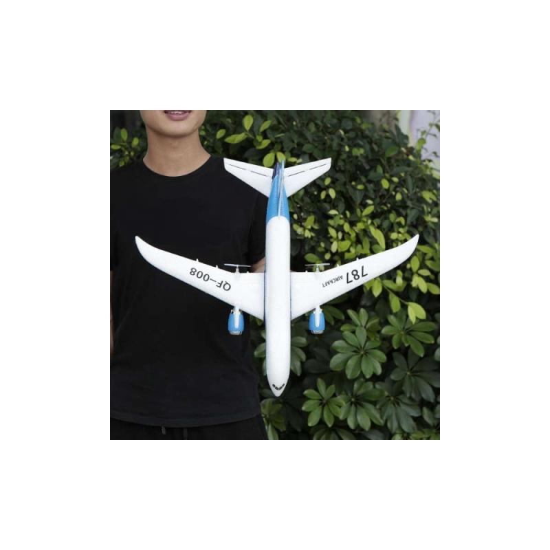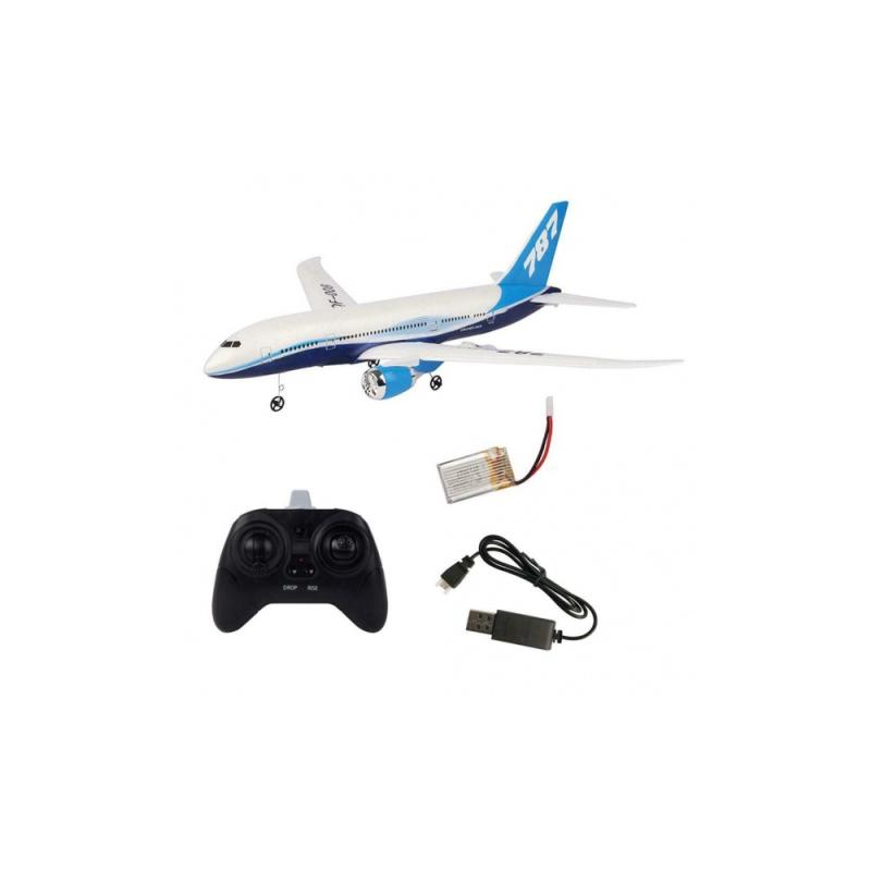 Letoun 787 je dokonalým letadlem pro začátečníky i pro všechny ambiciózní hobby piloty. Moderní šestiosý gyroskop model neustále stabilizuje, a pomáhá ovládat NEJEN oba motory, ale i výškovku. Tato stabilizace lze také vypnout a model pak zvádá i akrobatické manévry. Model je charakterizován velmi dobrými letovými vlastnostmi a robustní a osvědčenou technologií materiálu EPP. V balení je také moderní dálkové ovládání 2,4 GHz s baterií LiPo včetně nabíječky. Trup a křídla jsou vyrobeny z materiálu EPP, který je velmi oblíbený v modelářském světě a je odolný proti nárazu. Model je dodáván v RTF setu, je třeba jen přilepit součásti přiloženým lepidlem, nabít a můžete startovat. Ovladač je nastaven v Módu 2, plyn je tedy na levé ruce.