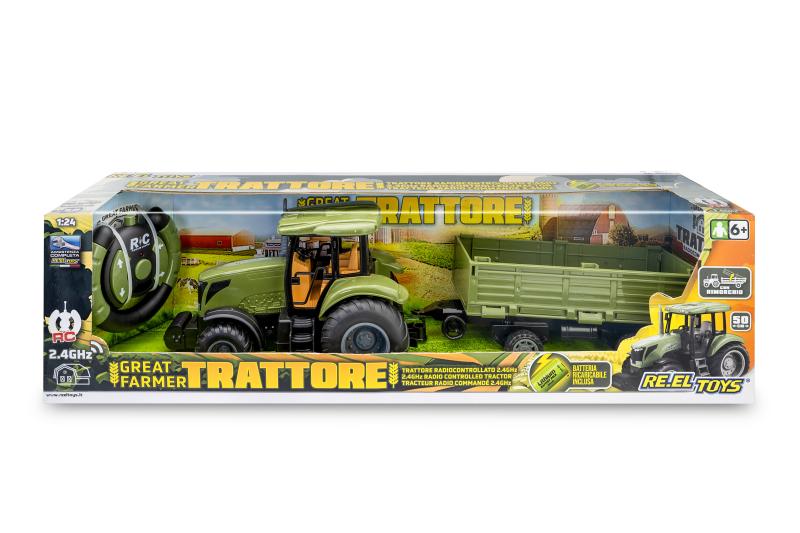 Radiem řízený traktor se sklápěcím vlekem o délce 50 cm, ovládání na frekvenci 2,4 GHz a dobíjecí lithiovou baterií v balení.Radiem ovládaný traktor se sklápěcím vlekem nabízí zábavu a realistický zážitek pro malé i větší nadšence do modelů. Tento model dlouhý 50 cm je vybaven bezdrátovým ovládáním na frekvenci 2,4 GHz, což umožňuje stabilní a přesné řízení i na větší vzdálenost bez rušení. Díky dobíjecí lithiové baterii, která je součástí balení, si užijete dlouhé hodiny hraní bez nutnosti časté výměny baterií.
