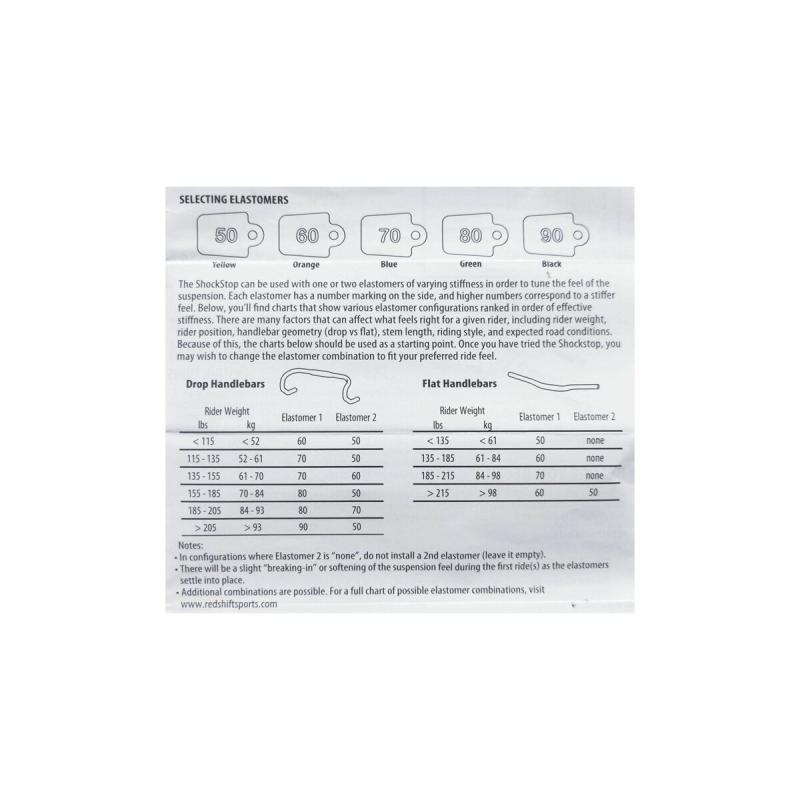 Součástí balení je pět elastomerů různých tvrdostí, z nichž dva jsou již předinstalované. Pro optimální nastavení tvrdosti doporučujeme prostudovat přiložený návod s tabulkou, která pomůže vybrat ideální kombinaci podle vašeho jízdního stylu.