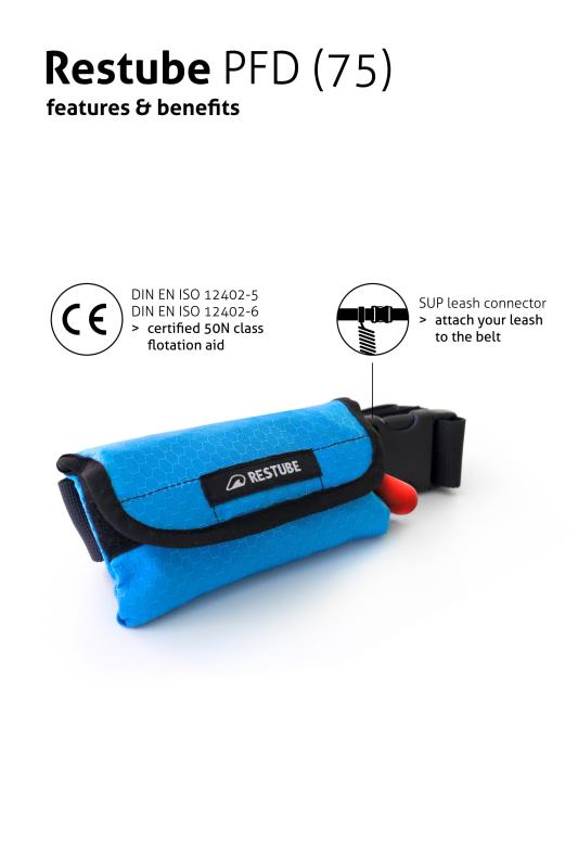 Záchranná pomůcka pro nouzové připady. Restube PFD má CE certifikát a je vhodný pro hmotnost uživatele 40kg a více. Systém během několika sekund nafoukne plovák, který se poutkem zavěsí na krk. Jde vlastně o plovací vestu, která je schovaná v kapsičce na opasku. zobrazit celý popis
