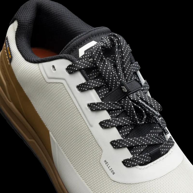 Model Hellion využívá lehký, prodyšný a odolný asymetrický svršek z materiálu Cordura®, navržený tak, aby vám umožnil jezdit dál a s větším nasazením. Tradiční šněrování zajišťuje pevné a přesné usazení boty na noze. Asymetrický límec navíc poskytuje dodatečnou ochranu vnitřní strany kotníku a tvarovaná mezipodešev z EVA pěny dodává chodidlu stabilní a efektivní základ pro šlapání.