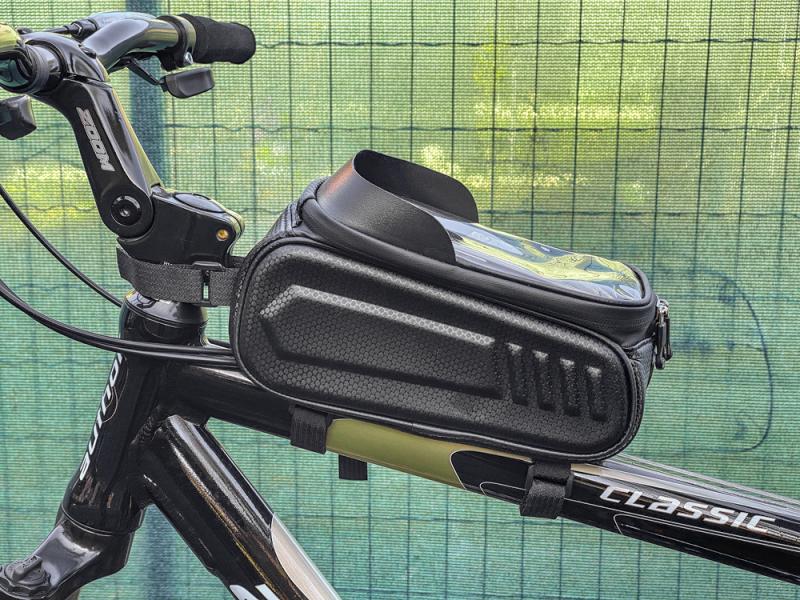 Instalace brašny je rychlá a snadná - nejsou k tomu potřeba žádné nástroje, připevňuje se na rám jízdního kola pomocí popruhů. Díky vodivé dotykové fólii můžete ovládat dotykový displej, aniž byste museli telefon vytahovat z tašky. Brašna je vyztužená, díky čemuž dobře ochrání obsah. Zapínání na zip.