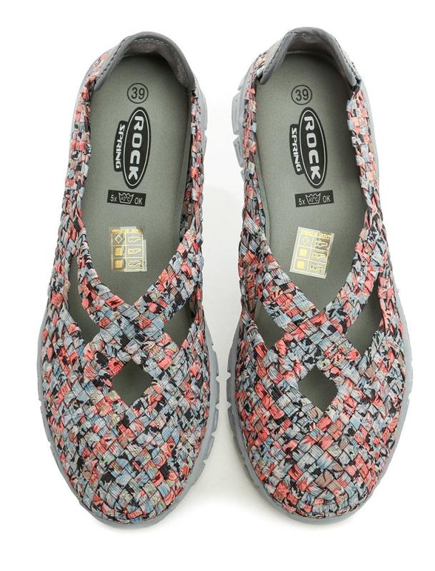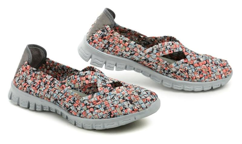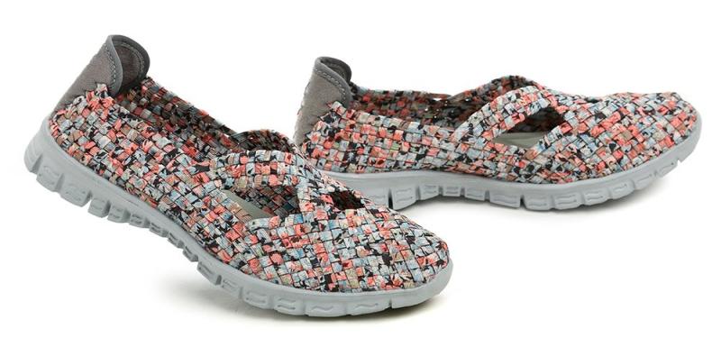 Obuv je vyrobená z textilného materiálu, ktorý je tvorený gumičkami. Tie sú spletené tak, že vytvárajú celistvý materiál, ktorý je príjemný pre chodidlo a súčasne je pružný. Vďaka tejto vlastnosti sa gumičková obuv dokáže prispôsobiť na každé chodidlo. Vnútri obuvi je vlepená textilná stielka z pamäťovej peny s anatomickým tvarovaním. Vložka z pamäťovej peny sa po krátkej dobe vytvaruje podľa tvaru chodidla.