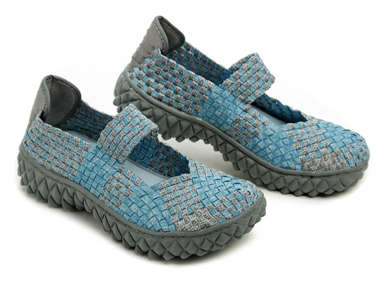 Obuv je vyrobená z textilného materiálu, ktorý je tvorený gumičkami. Tie sú spletené tak, že vytvárajú celistvý materiál, ktorý je príjemný pre chodidlo a súčasne je pružný. Vďaka tejto vlastnosti sa gumičková obuv dokáže prispôsobiť na každé chodidlo. Vnútri obuvi je vlepená textilná stielka z pamäťovej peny s anatomickým tvarovaním. Vložka z pamäťovej peny sa po krátkej dobe vytvaruje podľa tvaru chodidla.