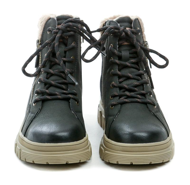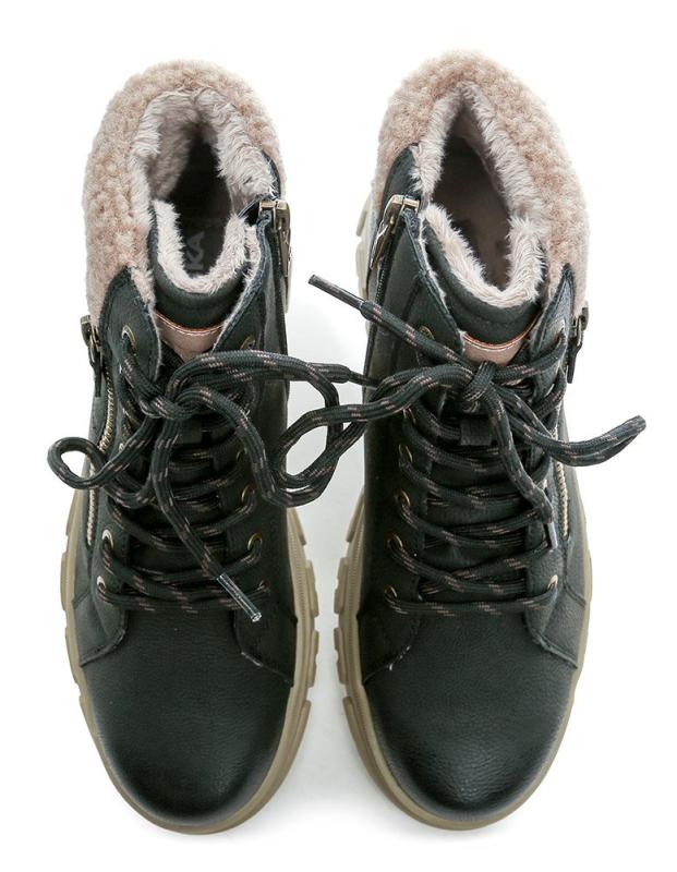 Zimní kotníčková vycházková obuv nabízí pohodlné zapínání na šněrování i praktický zip, což usnadňuje obouvání a přizpůsobení boty noze.