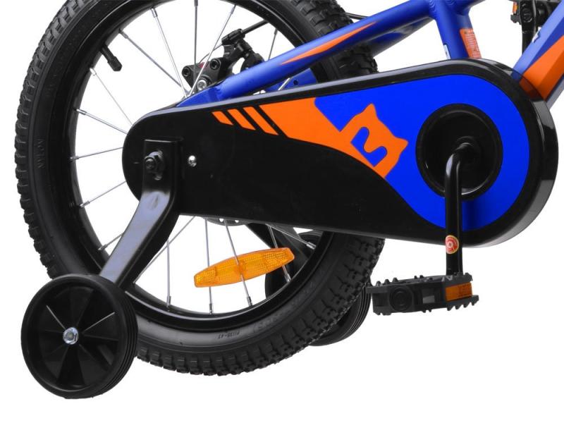 Kolo má odľahčený hliníkový rám typu BMX, ktorý okamžite získa pozornosť všetkých okoloidúcich. Na riadidlách nájdete ergonomické protišmykové rukoväte, zvonček a dve ručné páčkové brzdy, ktorých veľkosť je prispôsobená pre malé detské ruky. Pohodlné polstrované sedlo je výškovo nastaviteľné. Vďaka uzavretému bezpečnostnému krytu reťaze si deti nepošpinia nohavice a nehrozí zachytenie odevu do ozubeného kolesa. Zároveň chráni reťaz pred znečistením.
